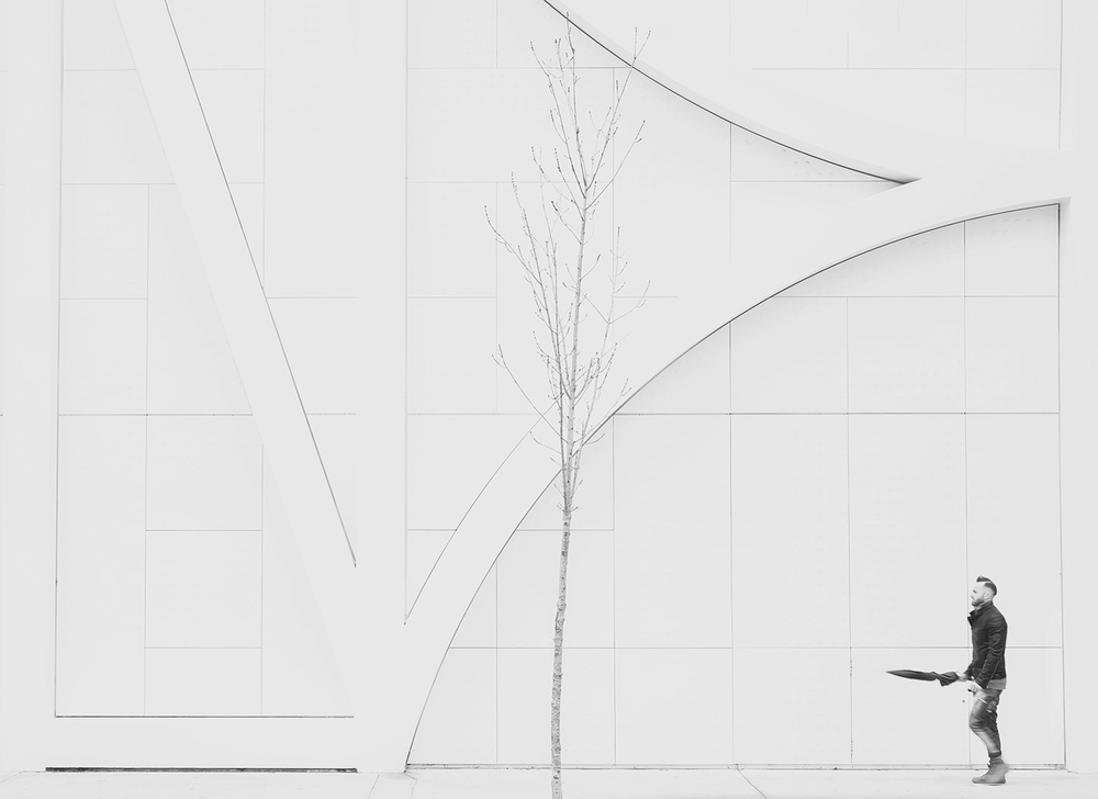 So, in my photography approach and most of the times, basically I try to connect shapes, patterns, light and tones, sometimes including people in the frame and sometimes not, but when I join people to the composition I always try that they work as another linking element in a geometric frame, thinking not about the person itself but the vertical line someone represents in a geometric composition. This linking element can be a static element or a dynamic element but always working to link different parts of the frame.
