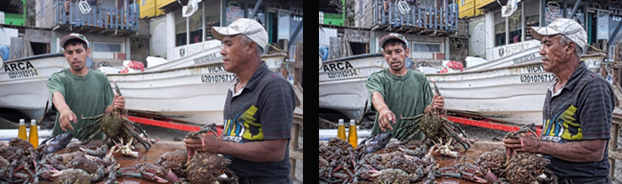 The original image of Martin and Geronimo sorting their day's catch of warm water crab.  Ugly critters!