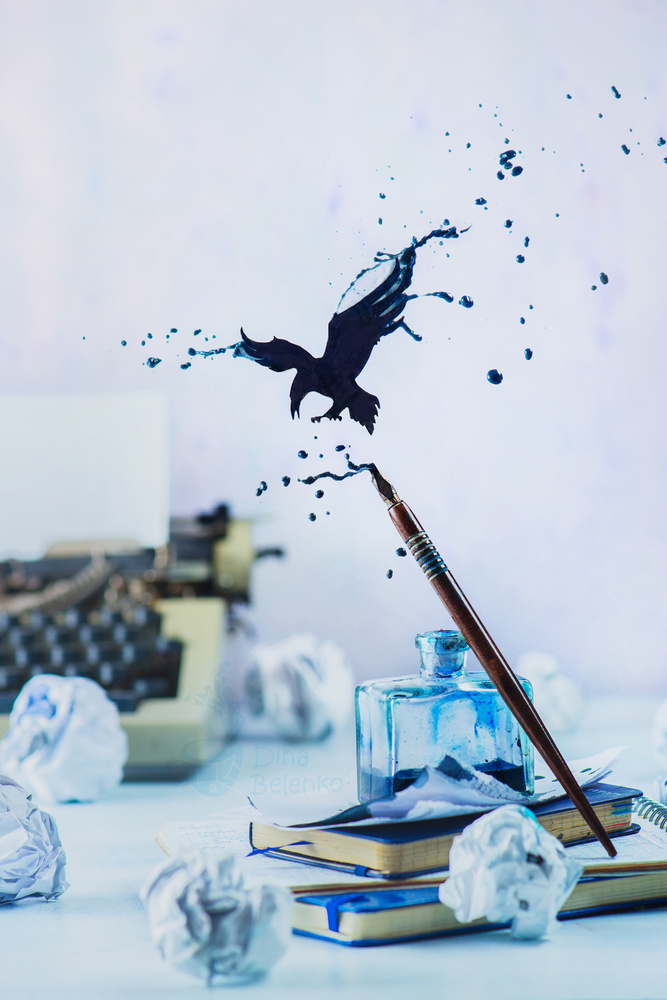 When all items are ready it's usually doesn't take long to make a composition (which I've already thought over at the first stage), set the lights and make a shot. Sometimes there may be difficulties with naughty sheets of paper or capricious smoke, so this stage can last from 1 to 4 hours.